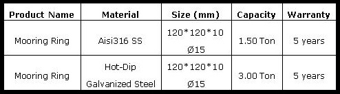 Mooring Ring Specifications: