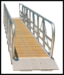 Hinged aluminum plate creates smooth transition between shore grade and aluminum gangway deck. |